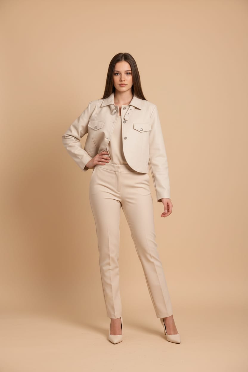 Giubbino elegante realizzato in ecopelle di alta qualità, caratterizzato da un design sofisticato con movenze a onde che creano un effetto dinamico e affascinante. Il capo combina stile contemporaneo e comfort, perfetto per chi desidera un'alternativa ecologica senza compromessi estetici. Ideale per completare look casual e formali con un tocco di originalità.